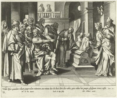 "Generosity of the poor widow" by Bie and Vos. (Luke 21:1-4)